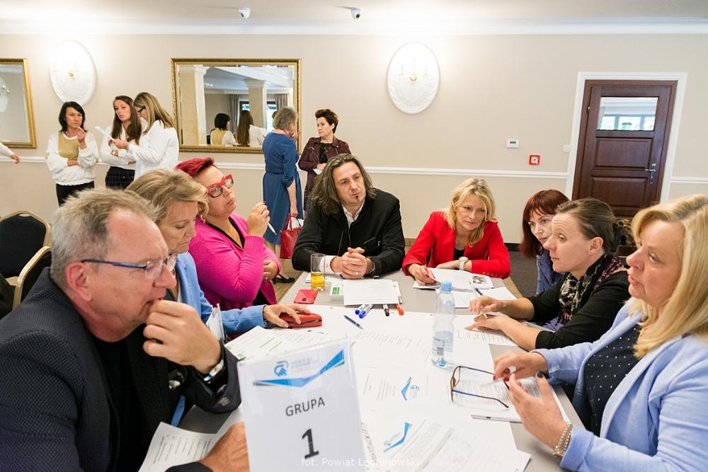 Moderatorem spotkania była Jadwiga Olszowska – Urban, ekspert w zakresie tworzenia partnerstw lokalnych, która wspierała wysiłki uczestników warsztatów opracowujących projekty międzypowiatowe w ramach wypracowanych na poprzednich spotkaniach 6 obszarów tematycznych: