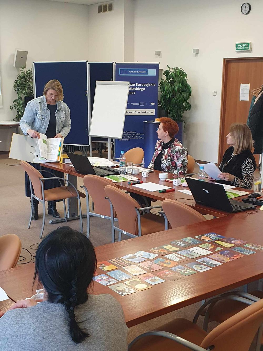 Dyskutowano również o możliwościach wykorzystania tych materiałów oraz o zaletach elastycznej formuły podręcznika, który stanowi źródło inspiracji do rozwoju warsztatu pracy doradcy zawodowego, a także ułatwia dopasowanie scenariuszy zajęć grupowego poradnictwa zawodowego do potrzeb konkretnych grup osób bezrobotnych. W szkoleniu wzięło udział 8 doradców zawodowych z Powiatowych Urzędów Pracy - z Grajewa, Sokółki, Białegostoku, Wysokiego Mazowieckiego.